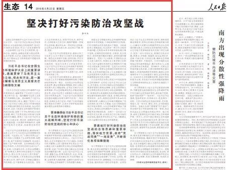 生態環境部部長在《人民日報》發表署名文章:堅決打好污染防治攻堅戰 二維碼