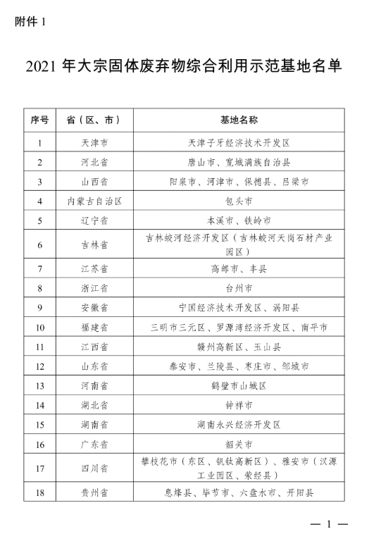 各省、自治區、直(zhi)轄市及(ji)計劃(hua)單列市、新(xin)疆生產(chan)建(jian)設兵團發展改革委:為貫徹落實“十四五”規劃《綱要》和《關(guan)(guan)于(yu)“十四五”大(da)(da)宗(zong)(zong)固(gu)(gu)體廢棄(qi)物綜(zong)合利(li)(li)(li)(li)用的(de)指導意見》,我(wo)委印發(fa)了《關(guan)(guan)于(yu)開展(zhan)大(da)(da)宗(zong)(zong)固(gu)(gu)體廢棄(qi)物綜(zong)合利(li)(li)(li)(li)用示范(fan)的(de)通知》(發(fa)改(gai)辦環資〔2021〕438號(hao),以下簡稱(cheng)《通知》)。經各(ge)地發(fa)展(zhan)改(gai)革(ge)委審核(he)推薦、專家(jia)評審、網上公(gong)示等(deng)程序,確(que)定了40個大(da)(da)宗(zong)(zong)固(gu)(gu)體廢棄(qi)物綜(zong)合利(li)(li)(li)(li)用示范(fan)基(ji)地和60家(jia)大(da)(da)宗(zong)(zong)固(gu)(gu)體廢棄(qi)物綜(zong)合利(li)(li)(li)(li)用骨干企業(詳細名單見附件(jian))。為加快推進基(ji)地建(jian)設(she)和骨干企業培育,確(que)保如期完成建(jian)設(she)目標任務,進一步提升大(da)(da)宗(zong)(zong)固(gu)(gu)體廢棄(qi)物綜(zong)合利(li)(li)(li)(li)用水平,推動資源綜(zong)合利(li)(li)(li)(li)用產業節能降(jiang)碳(tan)(tan),助力(li)實現碳(tan)(tan)達峰碳(tan)(tan)中(zhong)和,現將有關(guan)(guan)事項通知如下:一、進(jin)一步完善基地(di)和骨干企業(ye)實施方案各地發展(zhan)改革(ge)委要指導2021年(nian)(nian)確定的示范(fan)(fan)基地和(he)(he)骨干企(qi)業,聚焦《通知》確定的產業布(bu)局集聚化、利用方式(shi)低碳化、技(ji)術裝(zhuang)備先進化、模式(shi)機(ji)制創新化、運營管理規(gui)范(fan)(fan)化等五項重點任務,嚴格按照實施(shi)方案(an)編制大綱,進一步完善2022至2025年(nian)(nian)建設實施(shi)方案(an),突出節(jie)能(neng)降碳,明確相關建設目(mu)標(biao)、重點任務、支撐項目(mu)和(he)(he)保(bao)障(zhang)措施(shi),重新核(he)算(suan)基準年(nian)(nian)(2021年(nian)(nian))和(he)(he)目(mu)標(biao)年(nian)(nian)(2025年(nian)(nian))的大宗固體廢棄物綜合(he)利用量和(he)(he)節(jie)能(neng)降碳量,省級發展(zhan)改革(ge)委審核(he)并(bing)匯總,于2022年(nian)(nian)3月31日前將實施(shi)方案(an)及核(he)算(suan)表報送國家發展(zhan)改革(ge)委(紙(zhi)質版一式(shi)兩(liang)份,并(bing)附電子版光盤)。