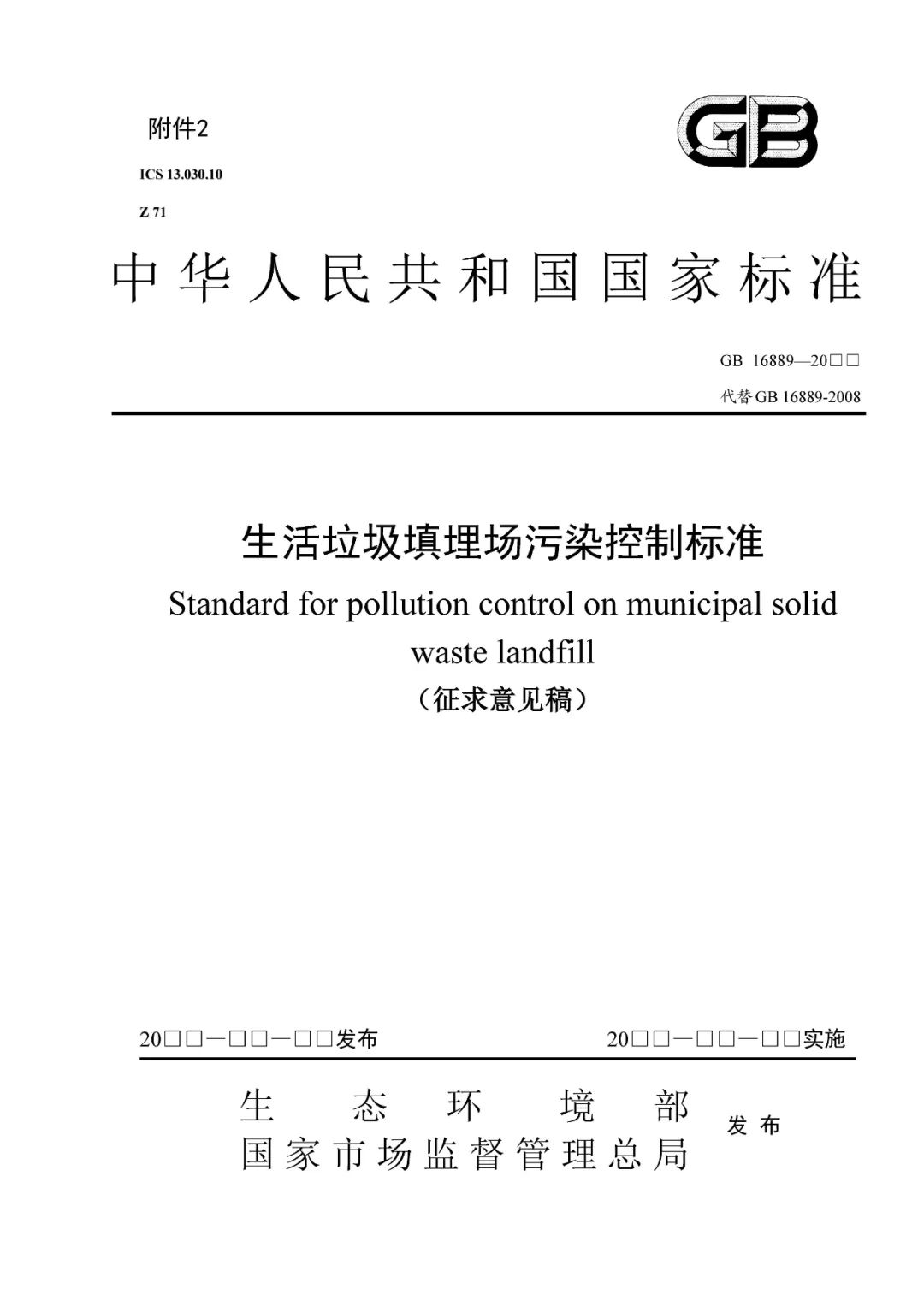 生態環境部公布國標《生活垃圾填埋場污染控制標準(征求意見稿)》 二維碼