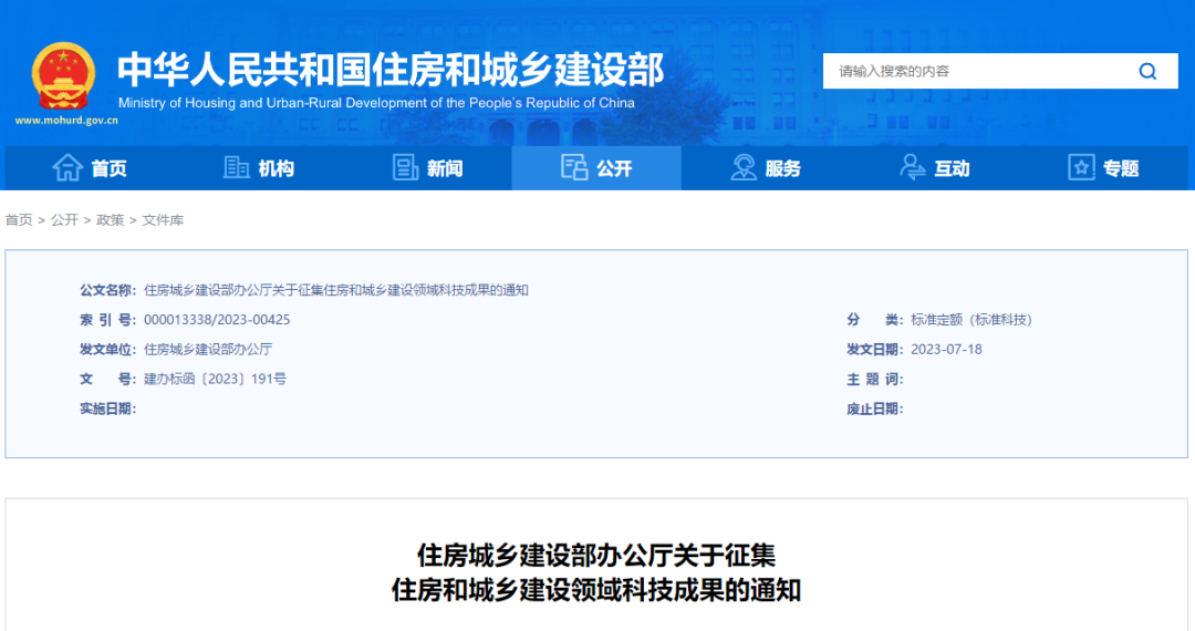 發(fa)表時間(jian):2023-07-24 15:33 近日,住(zhu)(zhu)房和(he)(he)城鄉(xiang)建設部辦公廳發(fa)布《關于征(zheng)集(ji)住(zhu)(zhu)房和(he)(he)城鄉(xiang)建設領域(yu)科(ke)(ke)技(ji)成果的通知(zhi)》,決定開展科(ke)(ke)技(ji)成果征(zheng)集(ji)工作。征(zheng)集(ji)對(dui)象主要為國(guo)家和(he)(he)省部級科(ke)(ke)技(ji)計劃支持形(xing)成的科(ke)(ke)技(ji)成果以及有關科(ke)(ke)研院所、高校、企業(ye)研發(fa)形(xing)成的科(ke)(ke)技(ji)成果。 成果(guo)征集分為國際(ji)(ji)先(xian)(xian)進技(ji)(ji)術(shu)(shu)和(he)(he)惠民(min)(min)實(shi)用(yong)技(ji)(ji)術(shu)(shu)兩類:國際(ji)(ji)先(xian)(xian)進技(ji)(ji)術(shu)(shu)基(ji)于住房和(he)(he)城鄉建設領域(yu)具有(you)國際(ji)(ji)影(ying)響力的(de)重大(da)工程項(xiang)目(mu),自主研發(fa)(fa)達到國際(ji)(ji)領先(xian)(xian)水平(ping)或先(xian)(xian)進水平(ping)的(de)新(xin)(xin)技(ji)(ji)術(shu)(shu)、新(xin)(xin)裝備(bei)、新(xin)(xin)材(cai)料和(he)(he)新(xin)(xin)產(chan)品(pin)(pin)等;惠民(min)(min)實(shi)用(yong)技(ji)(ji)術(shu)(shu)要切(qie)實(shi)解(jie)決住房和(he)(he)城鄉建設領域(yu)人民(min)(min)群眾“急難愁盼”問題,在創造(zao)高品(pin)(pin)質生(sheng)活過程中發(fa)(fa)揮實(shi)用(yong)價值的(de)新(xin)(xin)技(ji)(ji)術(shu)(shu)、新(xin)(xin)裝備(bei)、新(xin)(xin)產(chan)品(pin)(pin)和(he)(he)新(xin)(xin)材(cai)料等。 住房城(cheng)鄉建設部辦公廳關于(yu)征集住房和城(cheng)鄉建設領(ling)域科(ke)技成果的通知 建辦(ban)標函(han)〔2023〕191號(hao) 附件1:住房和城鄉建(jian)設領(ling)域科技成果(guo)推薦書.pdf 附件2:《住房和(he)城(cheng)鄉建設領域科(ke)技(ji)成(cheng)果推(tui)薦書》填寫說明.pdf 2023年7月18日 |